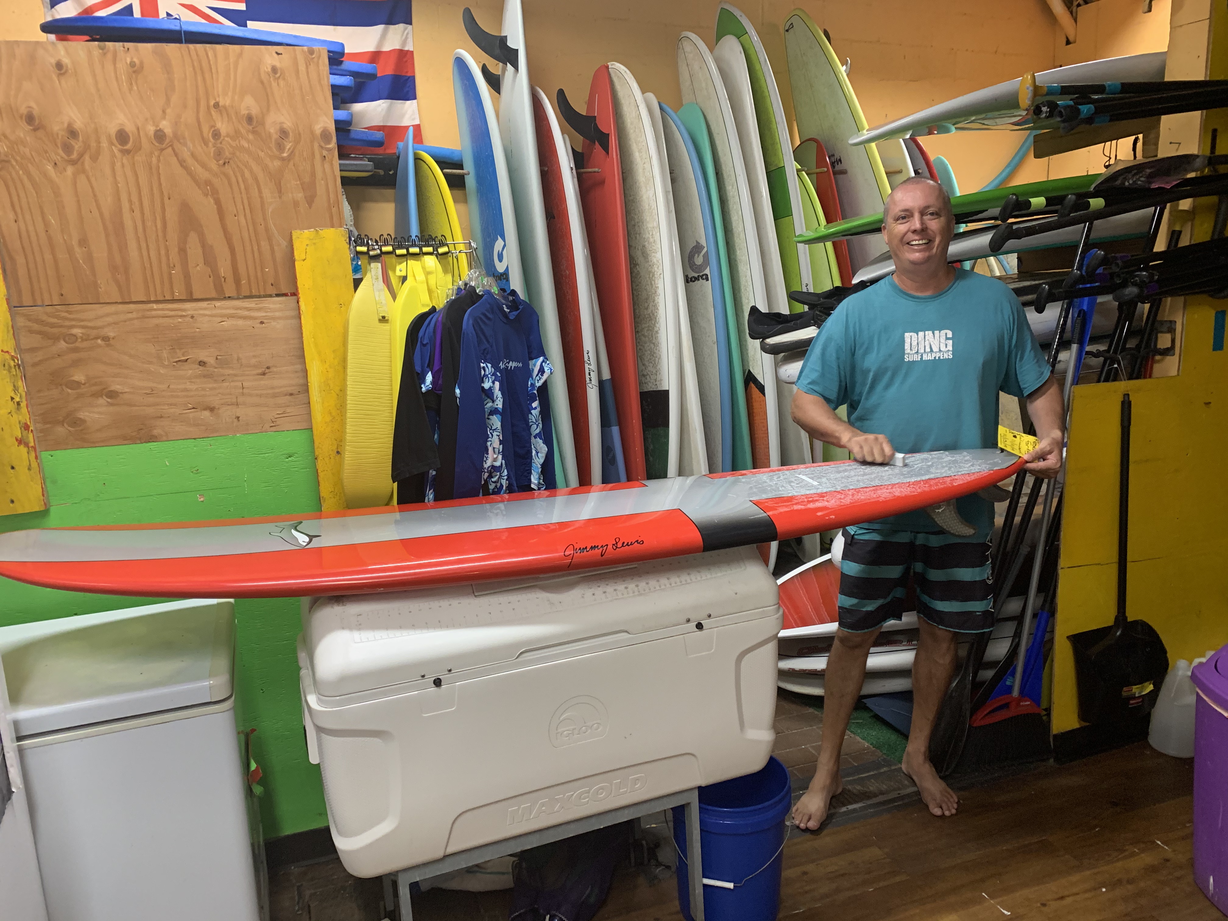 New Board For The Rental Fleet 15th Nov 2019 Maui Mike waxing a new Jimmy Lewis 8' board before adding it to our rental fleet! Facebook Email Print